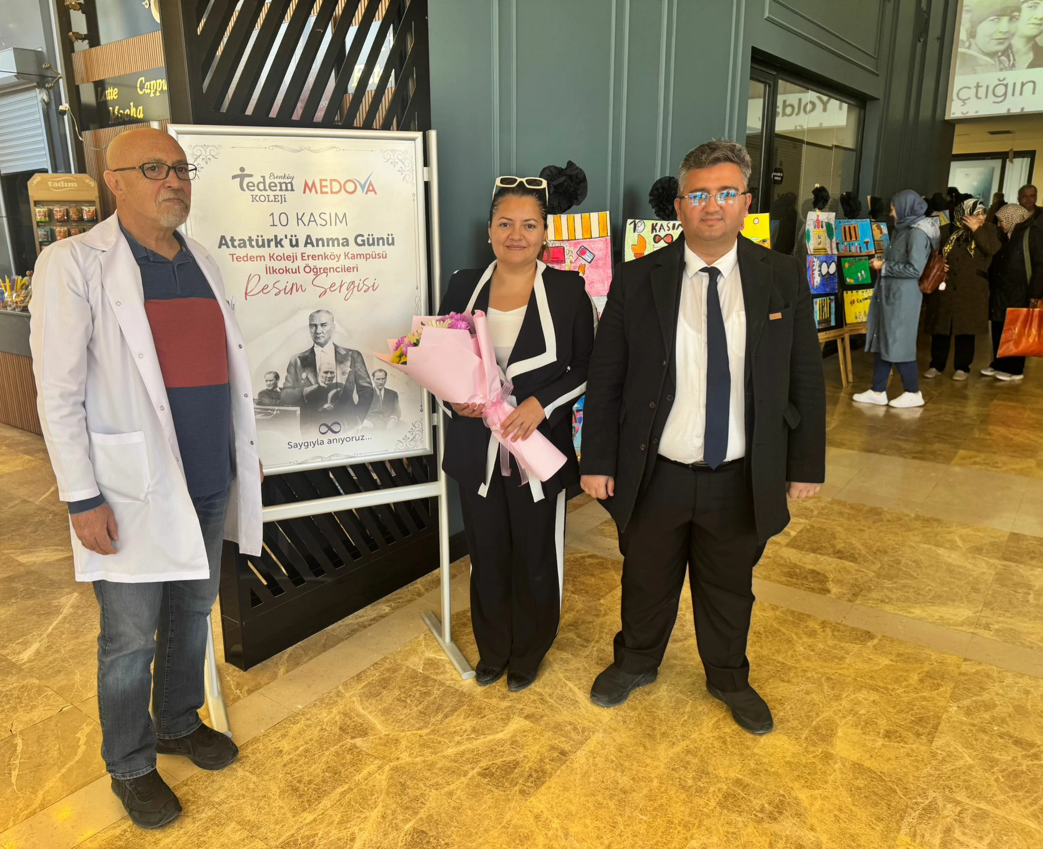 Tedem Koleji Erenköy Kampüsü ilkokul öğrencilerinin resim çalışmaları ile 10 Kasım Atatürk’ü Anma Günü Resim Sergimizi okul müdürü İlknur Orakcı, müdür yardımcısı Ahmet Sarıç, görsel sanatlar öğretmeni Tuğçe Kılınç ve Başhekim Yardımcısı Mehmet Çelik eşliğinde gerçekleştirdik.